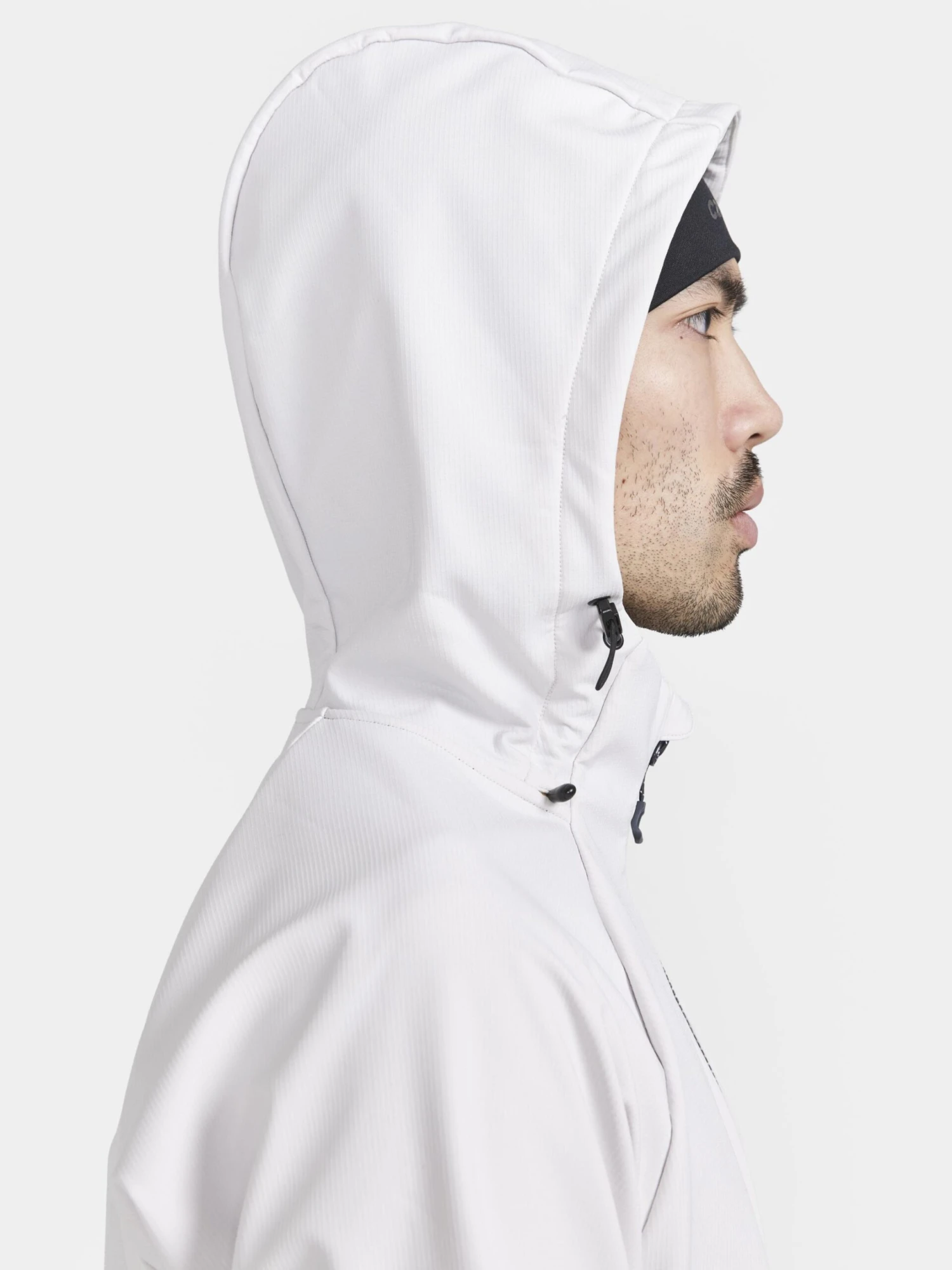 • Hood with adjustable elastic draw cords for protection against cold winds