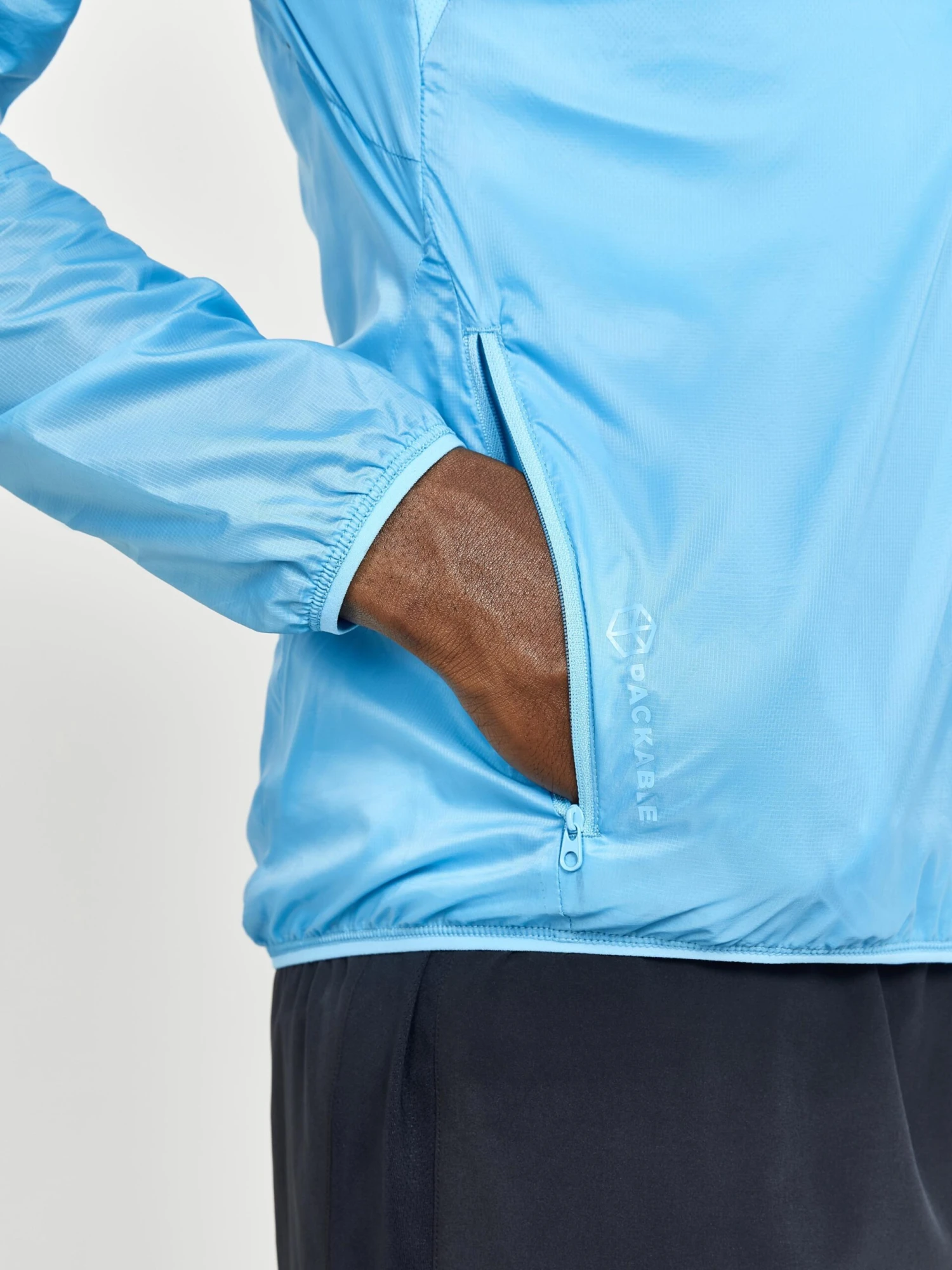 • Packable into its own zip pocket
