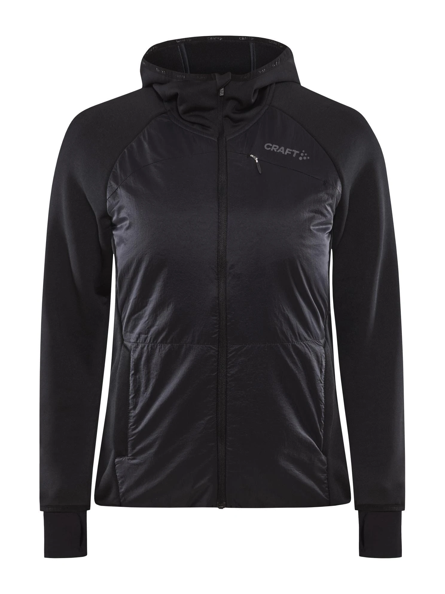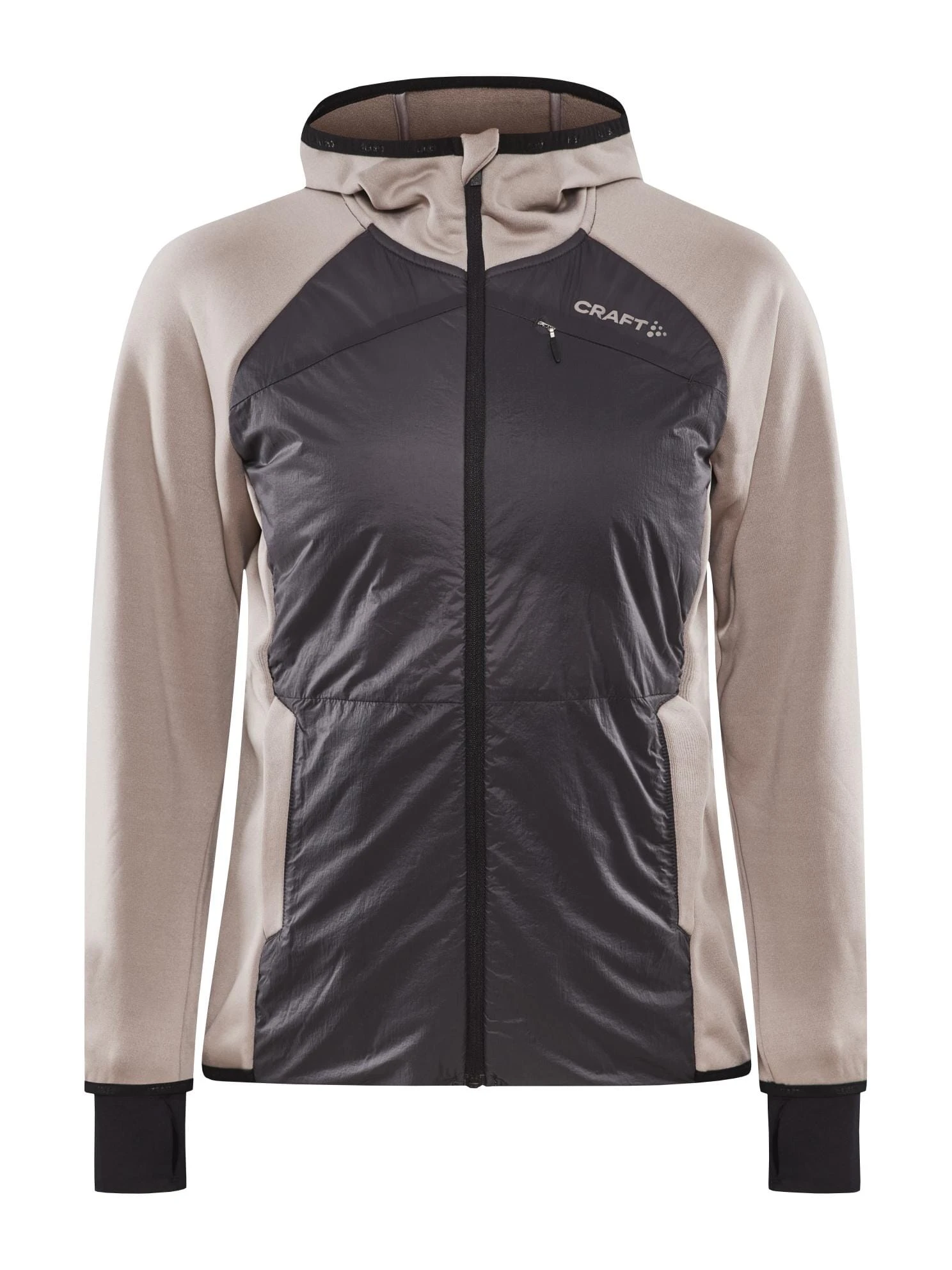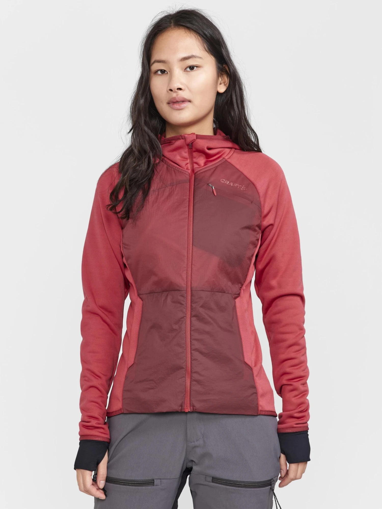From brisk mornings to chilly evenings, trust this hybrid midlayer to be your reliable outer layer or snug midlayer. Light-padded panels amp up the warmth, while the jersey hood adds a dash of style and will keep you cozy. Two zip side pockets stash your essentials, while the thumbholes add a playful twist. Gear up like a pro while treading lightly on Earth.